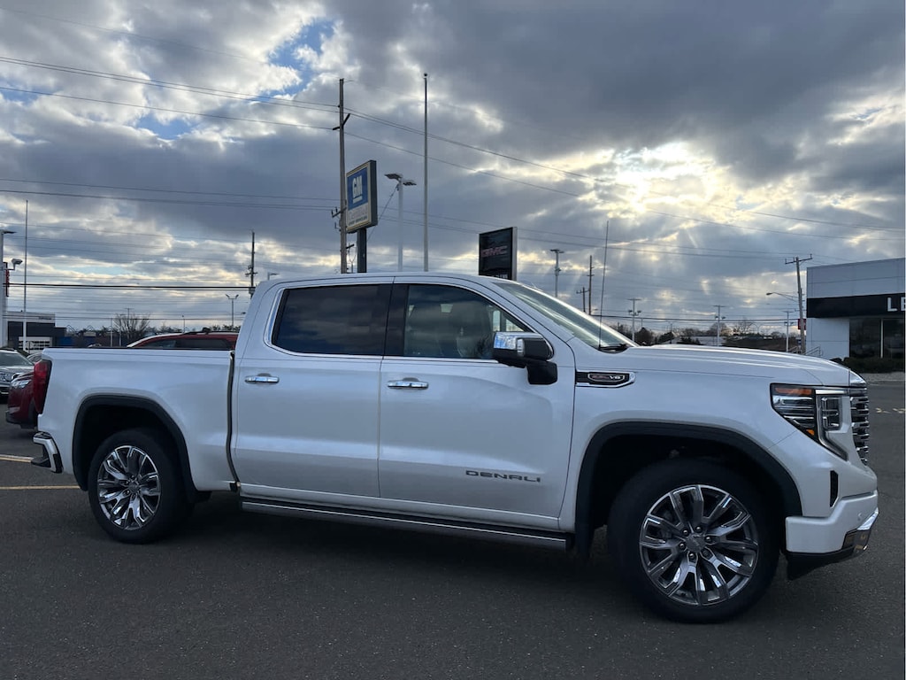 Heated Driver Seat, Cooled Driver Seat GMC Denali with WHITE FROST TRICOAT exterior and ATMOSPHERE / BROWNSTONE interior features a 8 Cylinder Engine with 420 HP at 5600 RPM*.
