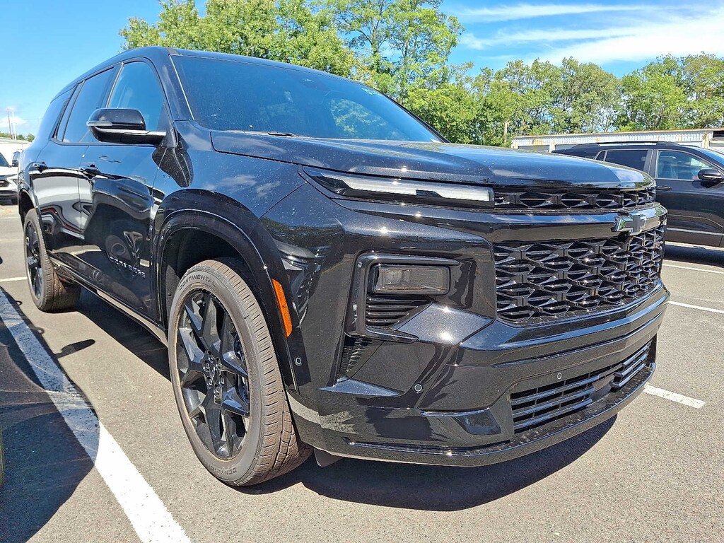 This new Chevrolet vehicle is located at Lester Glenn Chevrolet in Toms River, where we invite you to experience the way car buying and leasing should be! Heated Leather Seats, Third Row Seat, Power Liftgate, All Wheel Drive, Turbo Charged Engine, Aluminum Wheels, Hitch, LPO, FLOOR LINER PACKAGE. Mosaic Black Metallic exterior and RS Jet Black with Torch Red accents interior.